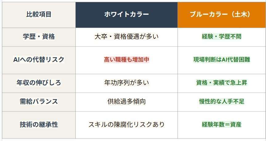 つまり、ブルーカラービリオネアとは一部の特別な成功談ではなく、技能を持つ人材が正当に評価される時代の象徴といえます。日本の土木業界でも、その流れはすでに始まっています。