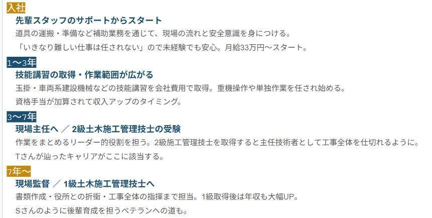 転職を考えるとき、「入社後にどこまで成長できるのか」というのは、気になるところです。加藤土建では、未経験で入社して終わりではなく、その先のキャリアまで見据えて働ける環境があります。Tさん・Nさん・Sさんの歩みが示しているように、成長のロードマップはしっかり整っています。